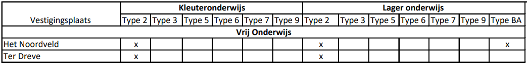 Opgelet: De scholen Ter Dreve (type 2) en het Noordveld (type 2 en basisaanbod) gebruiken een digitaal aanmeldingssysteem. De inschrijving gebeurt pas na de aanmelding.